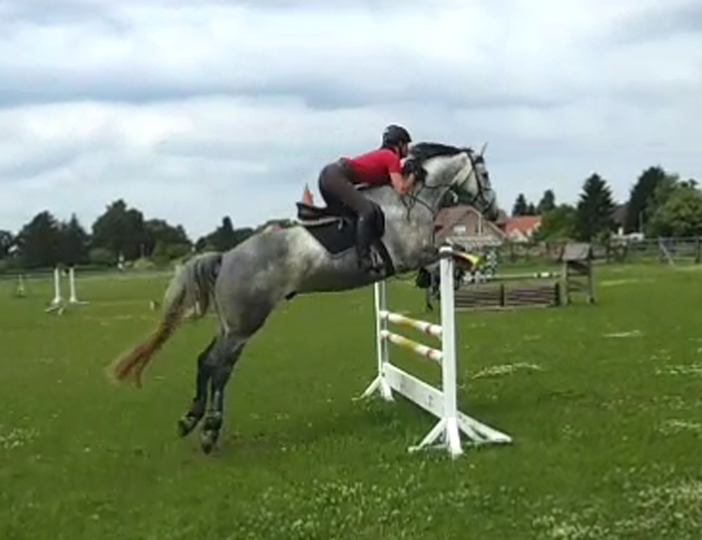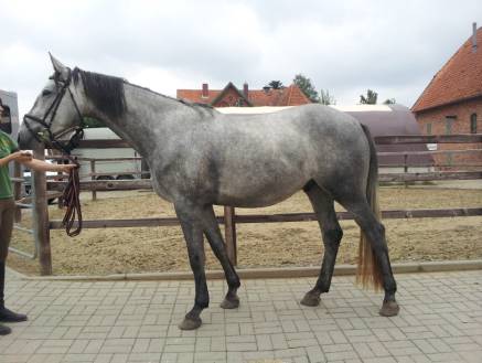 Sprünge herangeführt und macht das gut. 2013 wird er sein erstes Turnier gehen. Jetzt im August 2013 hat er einige A und L Prüfungen absolviert und auch schon Platzierungen in A-Prüfungen. 2014 ging gut los mit Platzierungen (A+L) in Hildesheim und Hohenhameln aber dann hat er sich einen Tritt von Wicklow eingehandelt mit einem dicken Einschuss. Damit war erst mal ein paar Wochen Pause angesagt mit wenig Bewegung. Anschließend wieder antrainieren geht auch nicht von heute auf morgen. Daher ist die schöne Sommersaison, wo er viel hätte sehen können, für ihn fast komplett ausgefallen. Im herbst folgten dann wieder Platzierungen in A+L-Springen, die richtig gut waren. Im Training geht er inzwischen locker über M-Parcours, die für 2015 auf dem Programm stehen. Wenn er denn gesund bleibt. 2015 war für Lui, wie er im Stall genannt wird, ein gutes Jahr. Er hatte in Burgdorf seine erste M-Runde ohne Springfehler und alles sah richtig gut aus. Leider hatte dann seine Reiterin einen schweren Unfall und es schien wieder eine verlorene Saison zu werden. Wir haben uns daher entschlossen in für insgesamt zwei Monate zu Julies Trainer in Beritt zu geben. Die reiterliche Umstellung war unproblematisch, was für Pferd und Reiter spricht. Es folgten einige gute, meist fehlerfreie Runden auf L und M Niveau in Isernhagen, Brelingen, Vorsfelde, Springe. Damit war die Saison nicht wieder ein Ausfall und Juli konnte anschließend wieder einsteigen und in Kolshorn und Hildesheim L und M mit gutem Erfolg und Platzierungen reiten. Damit ist die Freiluftsaison für Lui ersteinmal durch und die Winterarbeit steht nach einer Relaxphase an. Aus dem Stamm 7492 und hier direkt aus