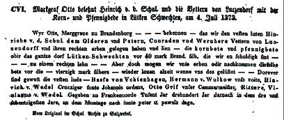 denn wenn die v. Lützendorf mit Markgraf Ludwig d.R. in die Mark gekommen