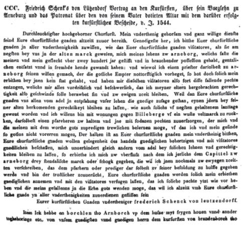 1544 berichtet Friedrich von Lützendorf in einem Schreiben an den Markgrafen,