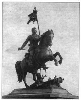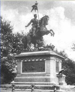 | Nach dem 2. Weltkrieg wurde das Reiterstandbild als Kriegerdenkmal entfernt und 1946 eingeschmolzen, es passte nicht mehr in die politische Landschaft. | |